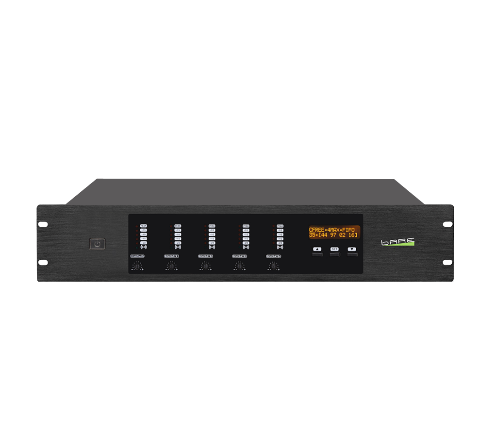 4.数字控制技术,话筒仅占用5个音频频点,避免串频现象的出现。解决了传统一拖四UHF无线会议无法解决多只无线会议话筒在同一场合同时使用的难题。