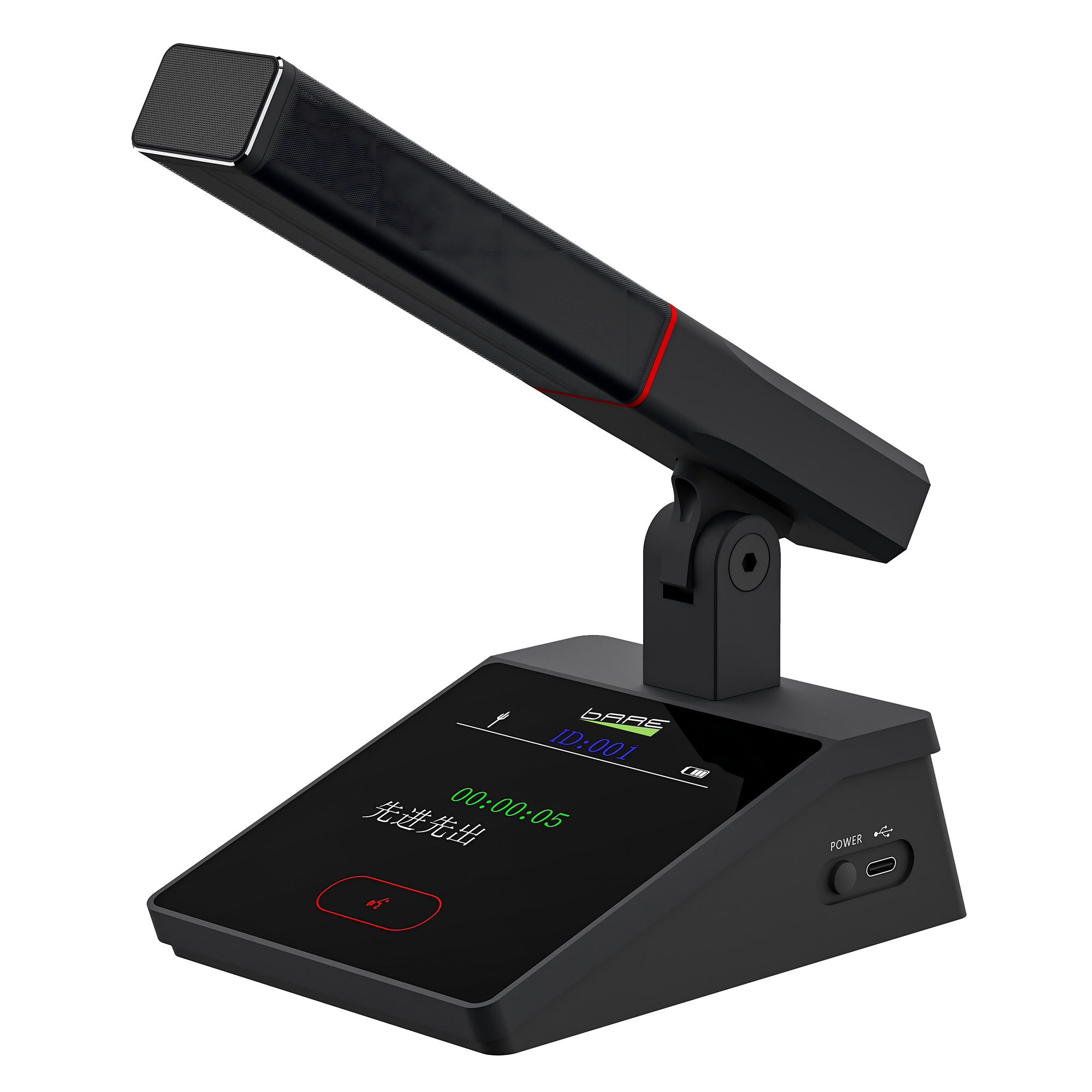 4、红色多角度雾面指示灯设计,指示发言状态;