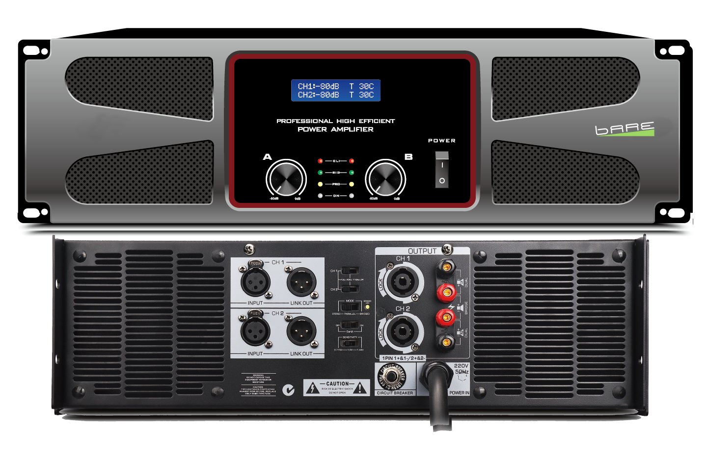 2:输出功率:8Ω2*1300W;4Ω2*2400W;桥接功率:2600W(8Ω),4800W(4Ω